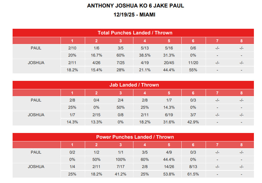 Статистика ударів бою Ентоні Джошуа – Джейк Пол