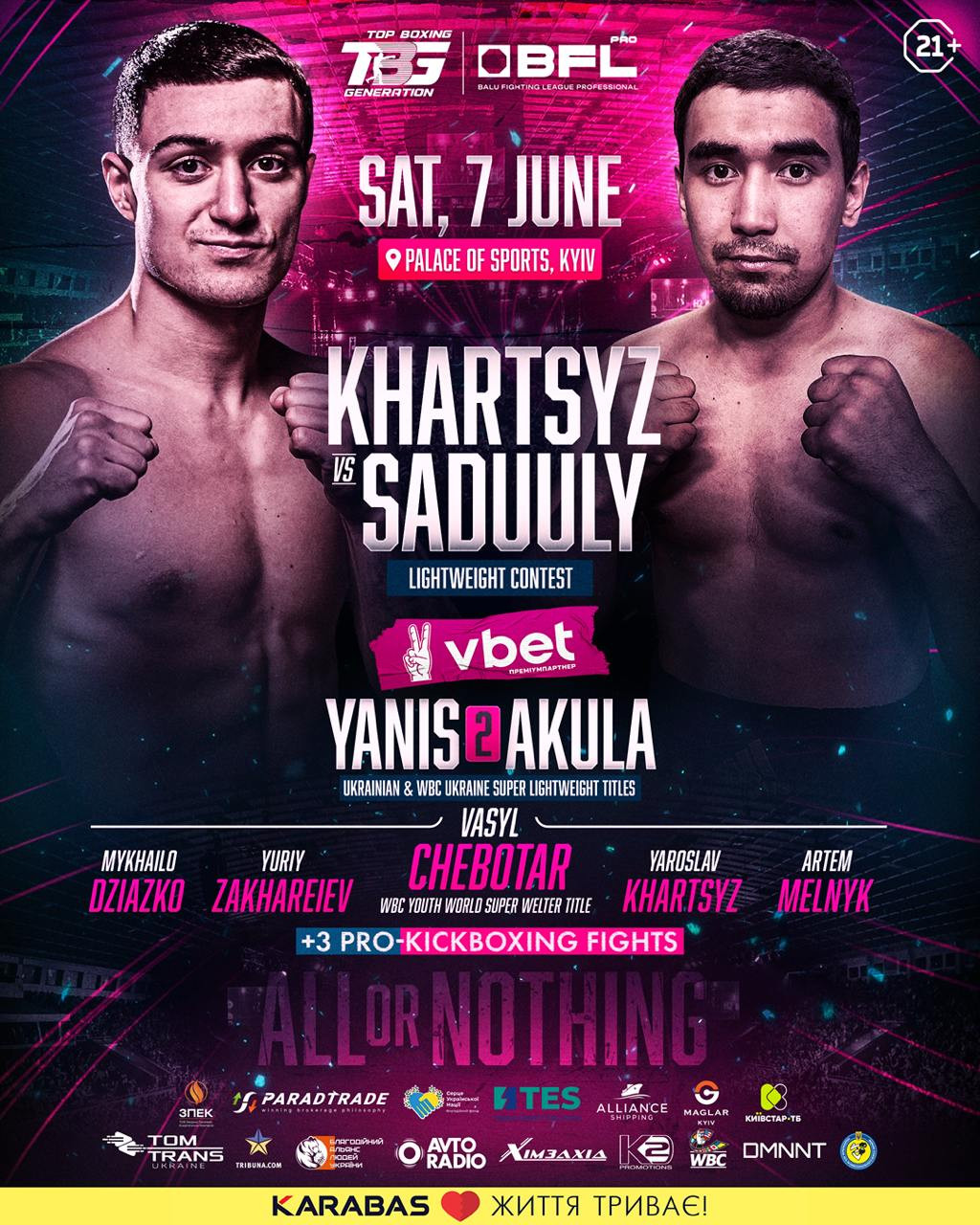 Поєдинок відбудеться у Києві у Палаці Спорту. Вечір боксу очолить реванш чемпіона України та WBC Ukraine у першій напівсередній вазі Яніса Куриленка (13-1, 8 КО) з Андрієм Боришпольцем (10-3, 4 КО).