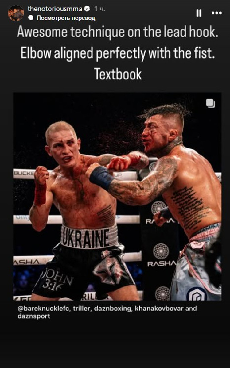 "Чудова техніка хука. Лікоть і кулак ідеально вирівняні. Як за підручником", – сказав Макгрегор.