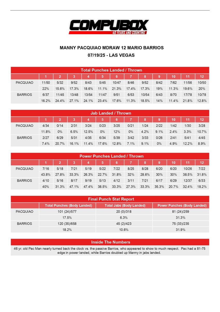 Статистика ударів поєдинку Маріо Барріос – Менні Пак'яо