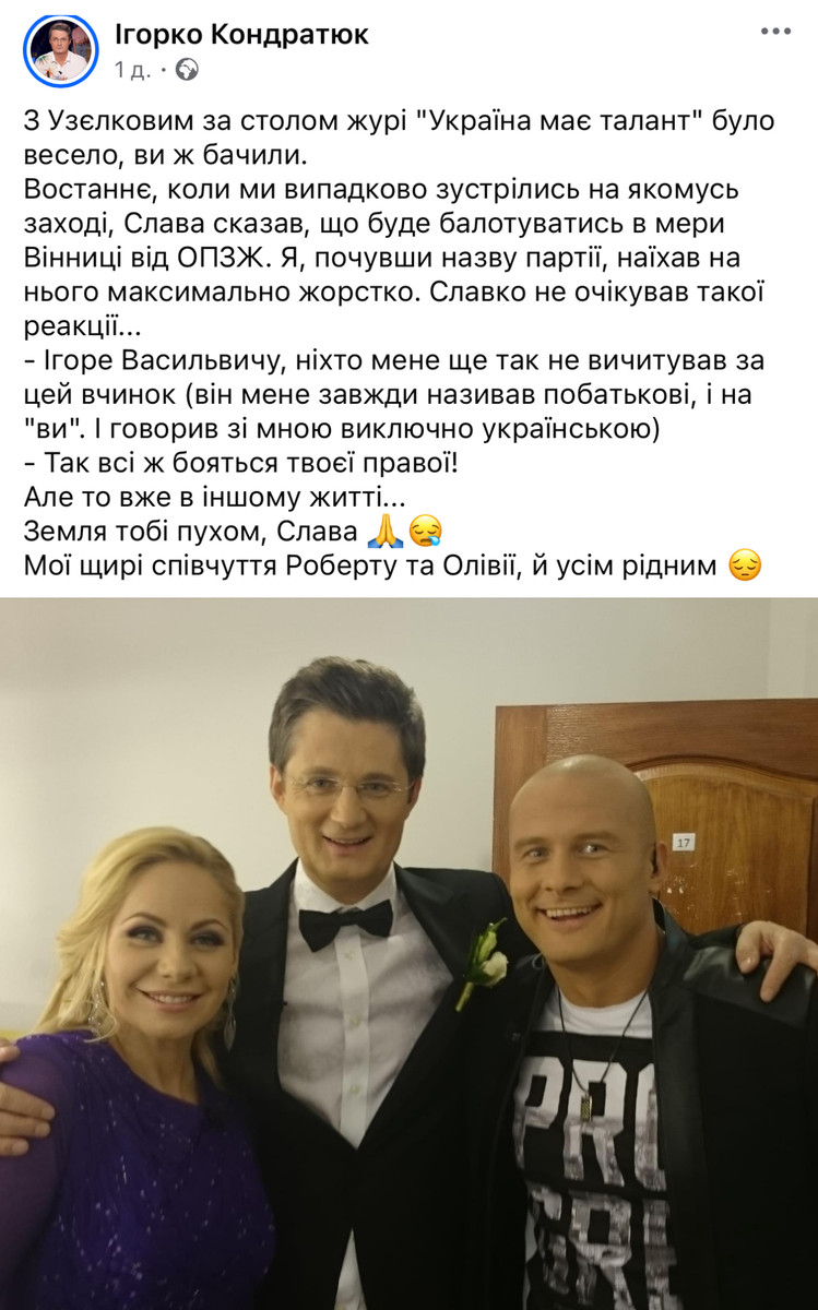 Ведуча та акторка Олеся Жураківська, яка свого часу працювала на телебаченні з Узелковим, написала теплі слова про В'ячеслава.