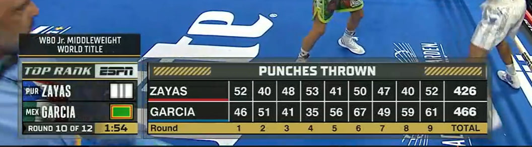Гарсія у раунді №3 спробував тиснути, але Заяс продовжував влучати і другим номером. Поки що 0 шансів для мексиканця. Четверта трьохвилинка також була за Ксандером, але без наднебезпеки для жодного з боксерів.