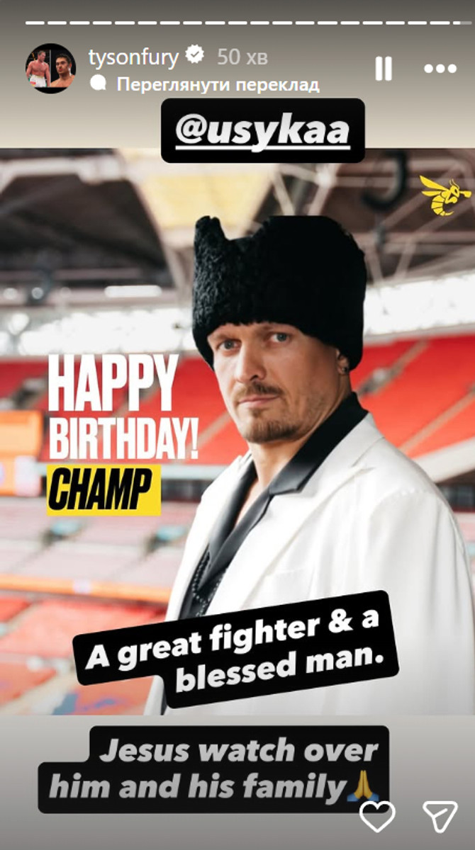 "З Днем народження, чемпіон! Великий боєць і благословенна людина. Ісусе, оберігай його та його родину", – написав Ф'юрі.