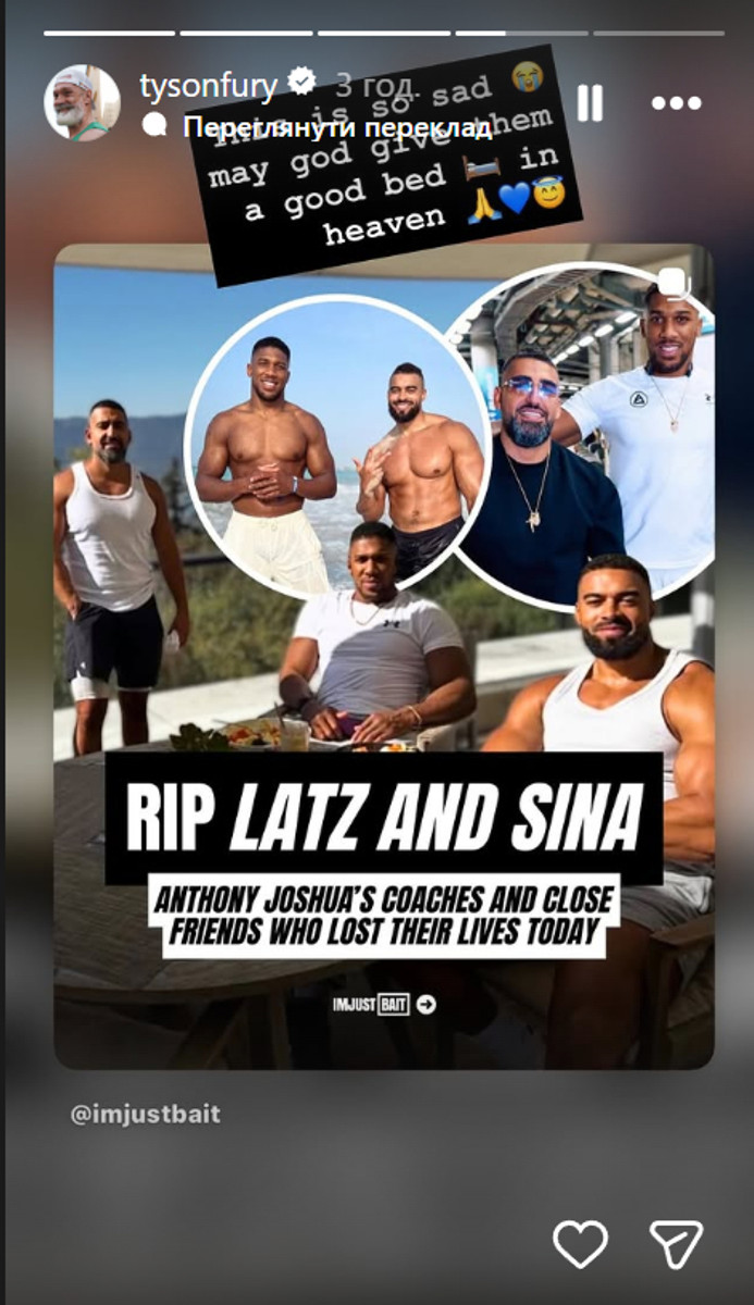 Дуже сумно: Фюрі відреагував на загибель тренерів Джошуа