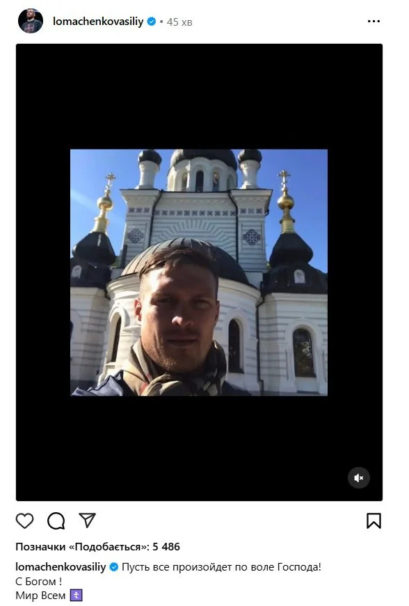 "Нехай усе станеться з волі Господа. З Богом! Мир усім", – написав Ломаченко російською мовою.