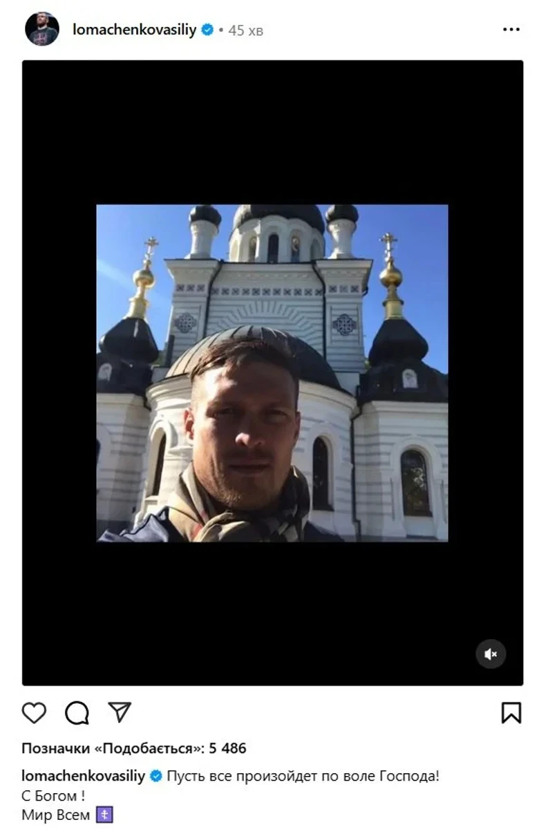 "Нехай усе станеться з волі Господа. З Богом! Мир усім", – написав Ломаченко російською мовою.