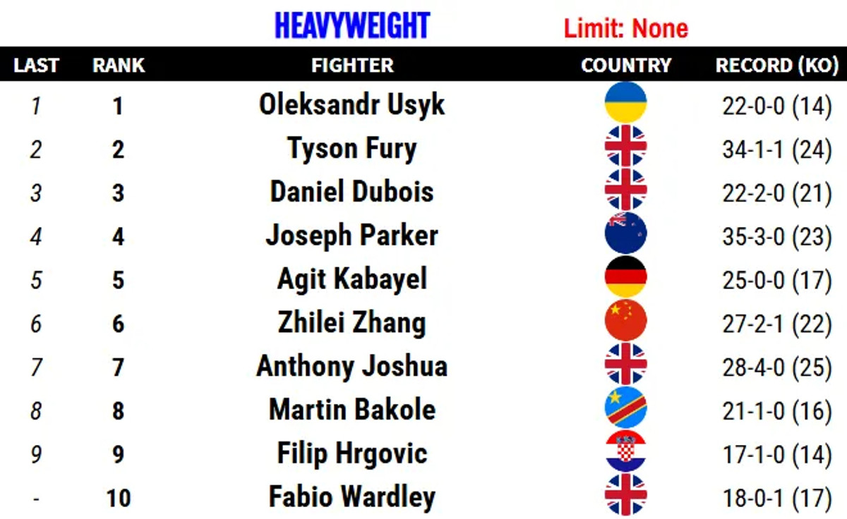 Володар поясів WBO, WBA, WBC Олександр Усик (22-0, 14 КО) очолив рейтинг найкращих надважковаговиків світу.