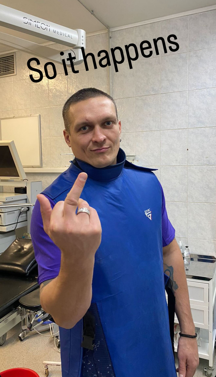 Світлину Усик супроводив коротким підписом англійською мовою: "So it happens" (Буває й таке).