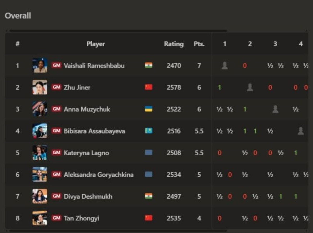 За підсумками туру Анна набрала шість очок та поділяє 2-3 місце з Чжу Цзінер – по шість очок, у лідерки Вайшалі Рамешбабу сім залікових балів.