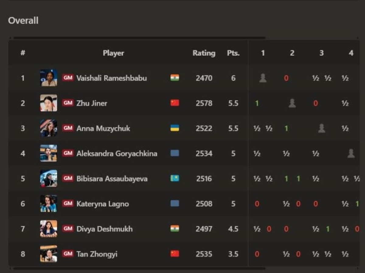 В інших партіях Бібісара Асаубаєва переграла Чжу Цзінер, Горячкіна була сильнішою за Дів'ю Дешмух, а Лагно розписала нічию з Тань Чжуньї.