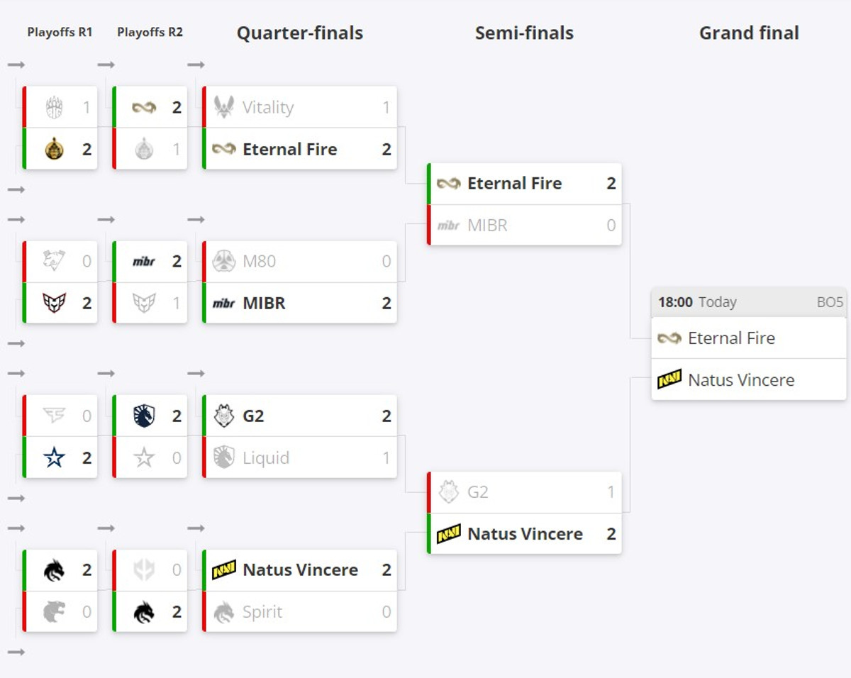 Склад української кіберспортивної організації Natus Vincere (2) з дисципліни Counter-Strike 2 зустрінеться з турецькою командою Eternal Fire (10) у фіналі престижного турніру ESL Pro League Season 20, що відбувається на Мальті.