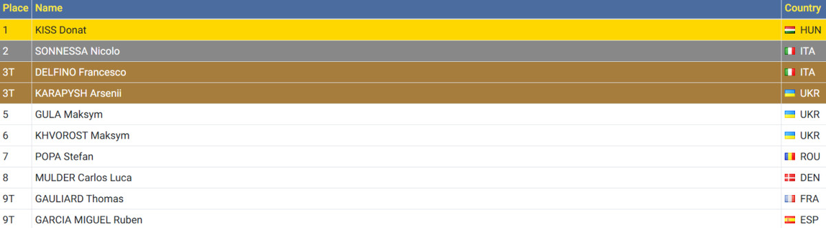 Таким чином, одразу три українські спортсмени завершили змагання у першій шістці. Сьогодні також брав участь у кадетському ЧЕ-2025 Арсеній Бондарчук, проте він завершив свій виступ на 71-му місці.