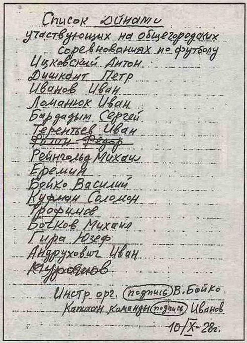 Цікаво, що міська першість розпочалась 23 вересня, а список гравців можна було подати до 10 жовтня. У мережі збереглось фото тієї заявки – в очі одразу кидається відсутність деяких прізвищ тих, хто брав участь в історичному матчі, але вже інші джерела вказують, що такі нестикування – звичайна справа для тих років.