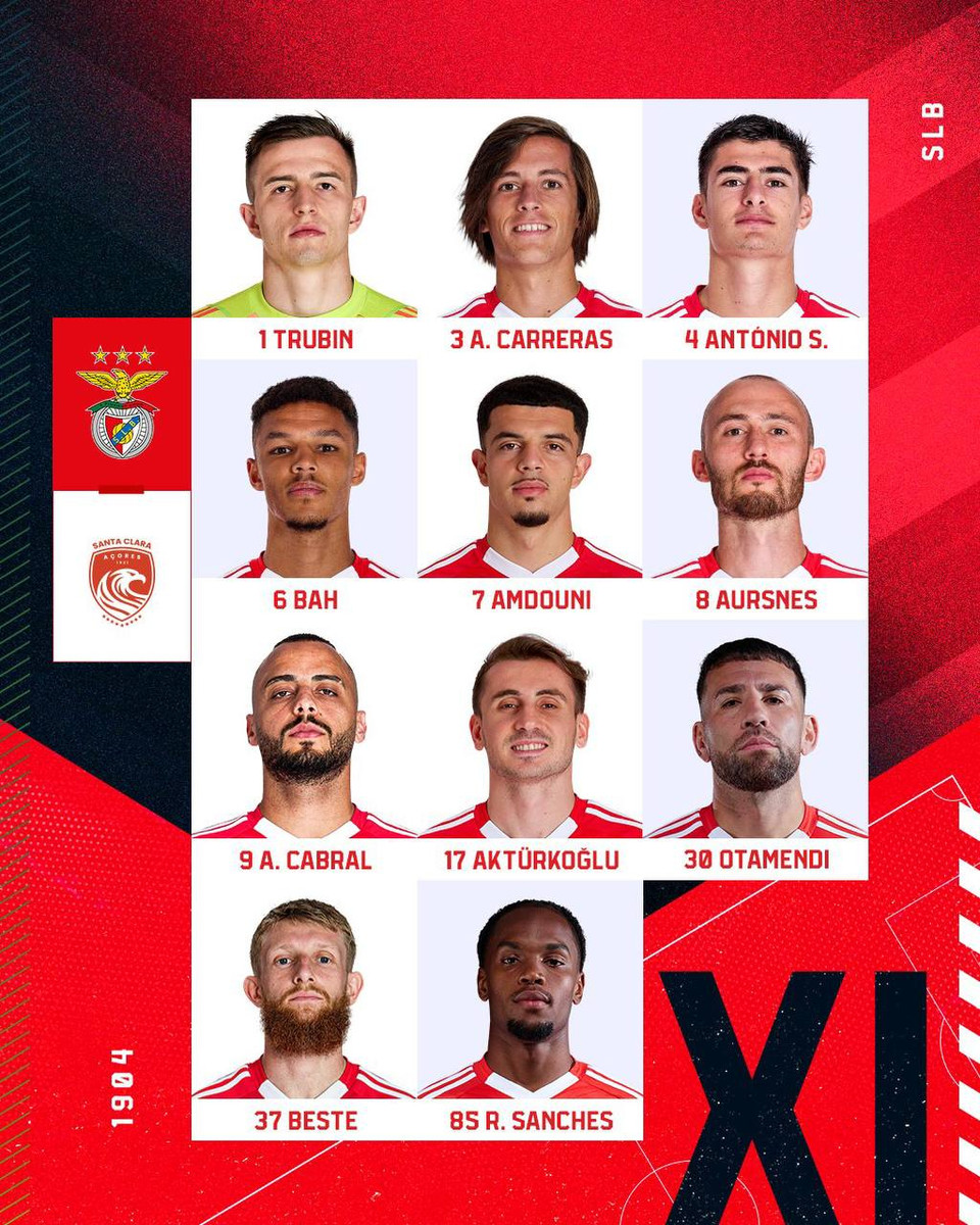Бенфіка: Трубін, Каррерас, Антоніу, Бах, Отаменді, Амдуні, Бесте, Санчес, Актюркоглу, Аурснес, Кабрал