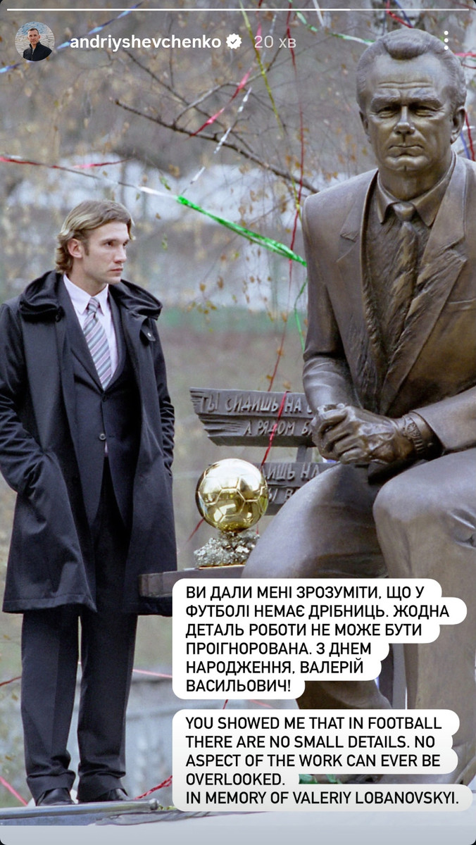Президент Української асоціації футболу Андрій Шевченко подякував легендарному тренеру Валерію Лобановському, якому сьогодні виповнилося б 87 років.