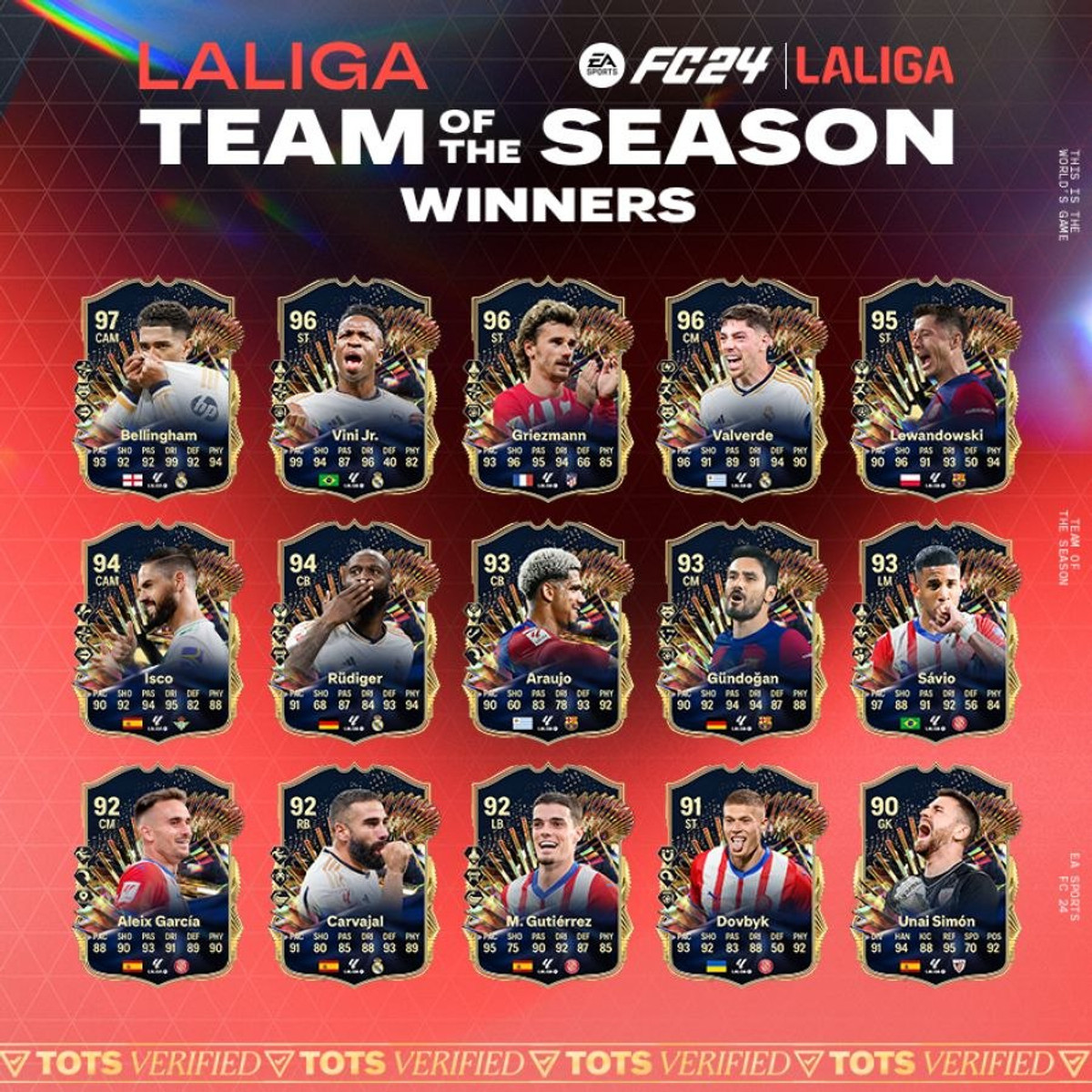 Півзахисники: Джуд Беллінгем, Федеріко Вальверде (Реал), Алеш Гарсія (Жирона), Ілкай Гюндоган (Барселона), Іско (Бетіс)