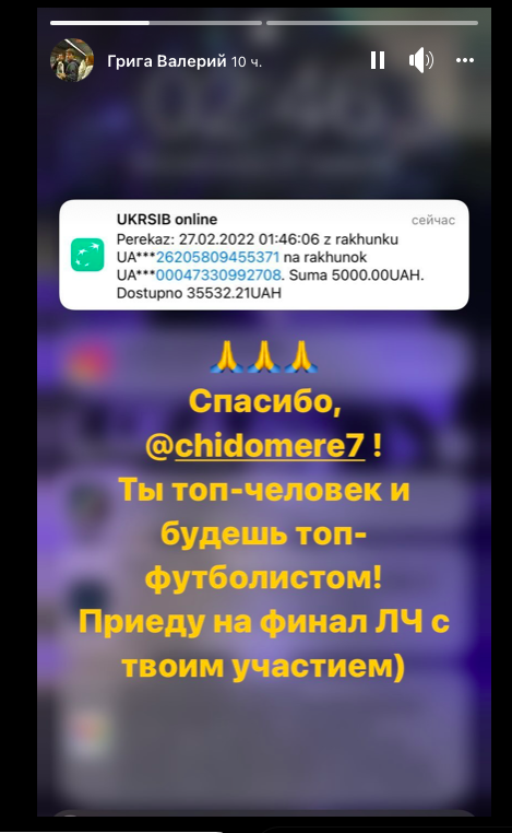 Футболіст відправив 5 тисяч гривень для армії, що захищає Україну від вторгнення російських військ.