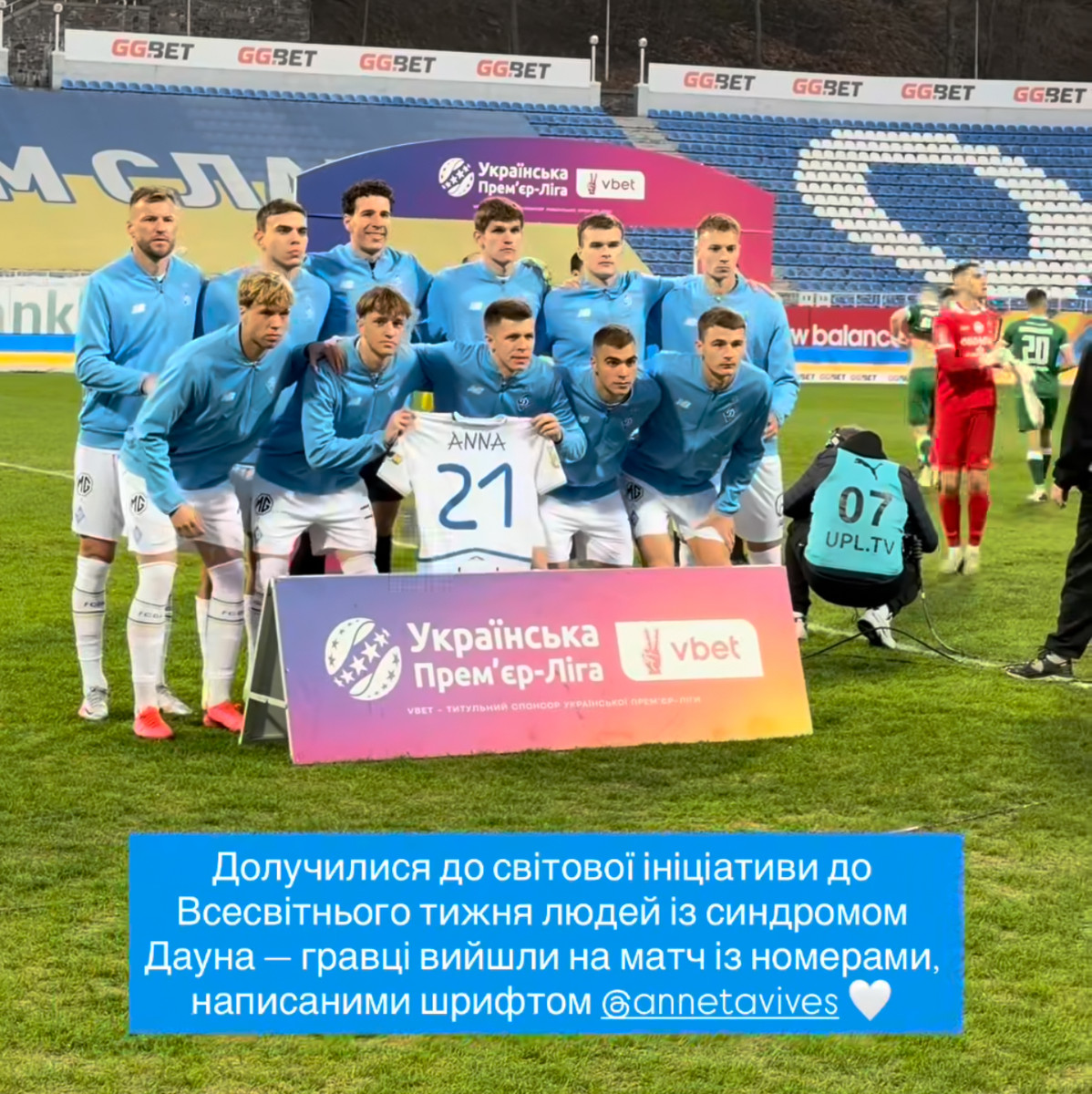 Перед початком поєдинку гравці Динамо також зробили спільне фото зі спеціальною футболкою, на якій був використаний шрифт Анни Вівс. Цей символічний жест став частиною ширшої кампанії підтримки інклюзивності у світовому спорті.