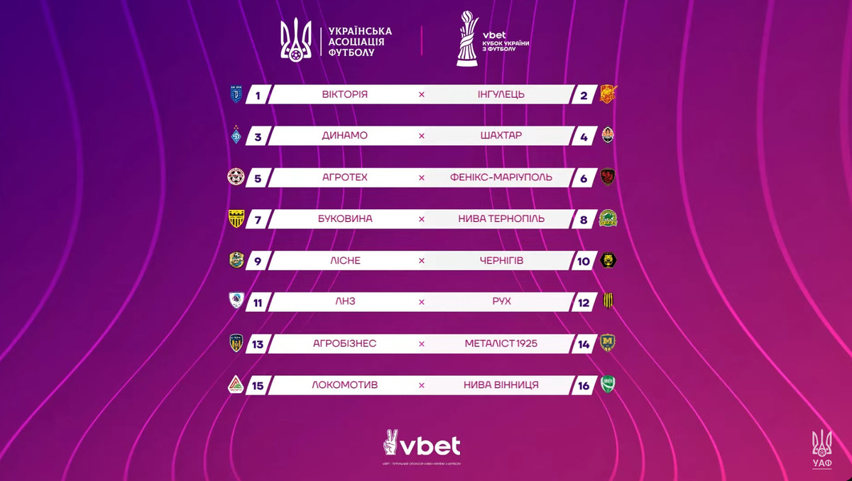 Так, Динамо та Шахтар зустрінуться у дербі вже на цій стадії. Також на вболівальників очікує ще одне протистояння клубів УПЛ – ЛНЗ вдома зіграє з Рухом.