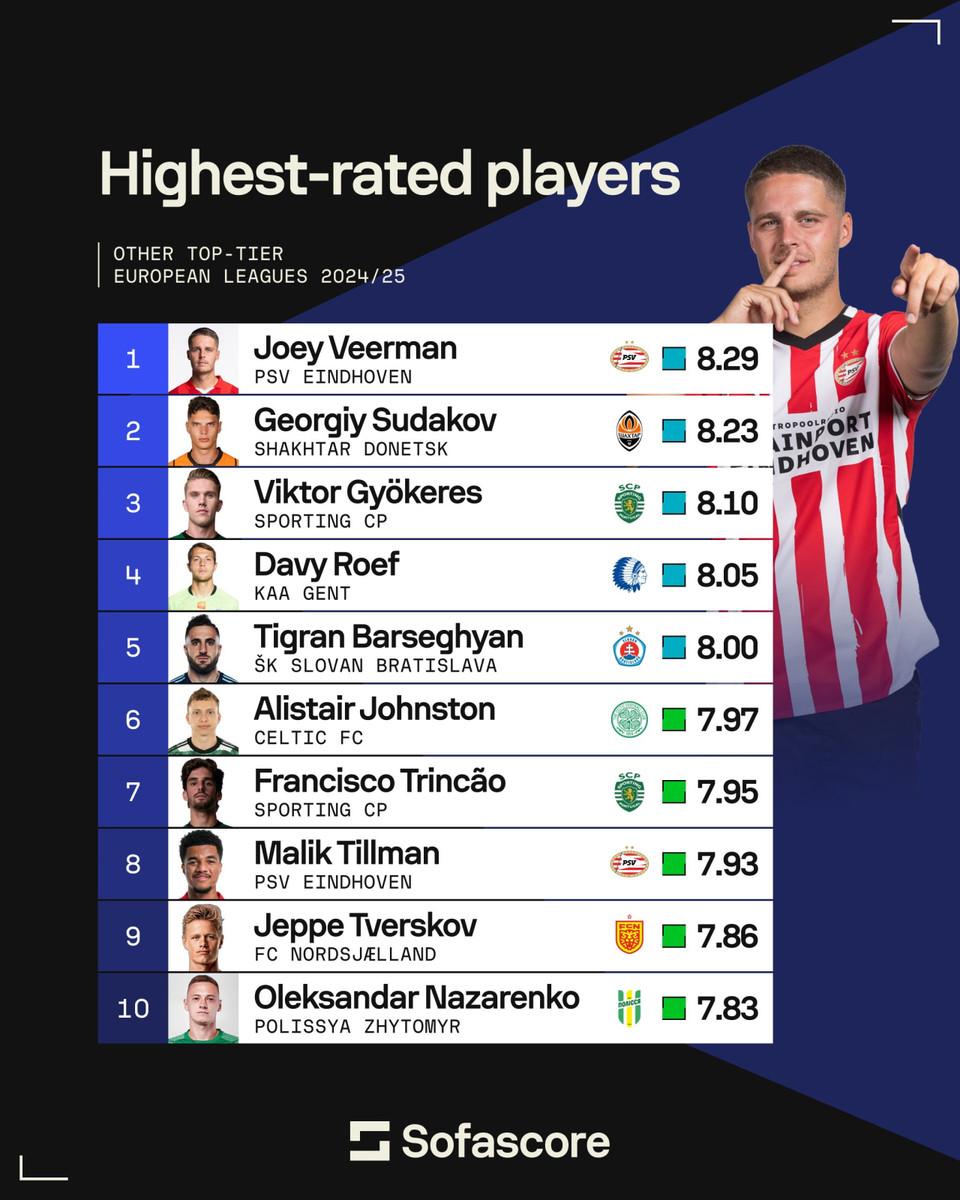 Лідером став гравець ПСВ Джоуї Верман. Сайт SofaScore дав йому рейтинг 8,29.