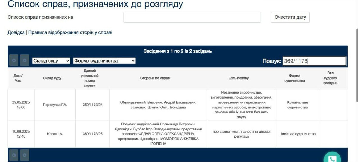 Про це стало відомо з реєстру Києво-Святошинського районного суду.