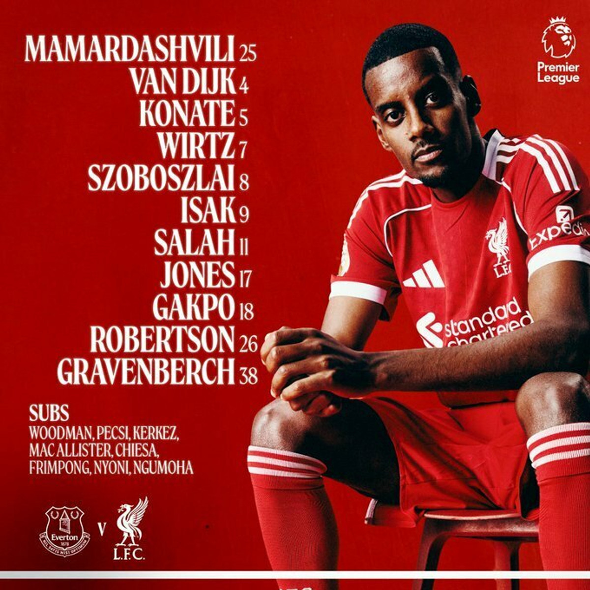 Ліверпуль: Мамардашвілі – Ван Дейк, Конате, Вірц, Собослаї, Ісак, Салах, Джонс, Гакпо, Робертсон, Гравенберх