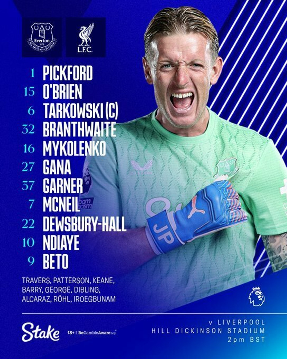 Евертон: Пікфорд – О'Браєн, Тарковскі, Брантуейт, Миколенко, Гана, Гарнер, Макніл, Дьюсбері-Холл, Ндіає, Бету