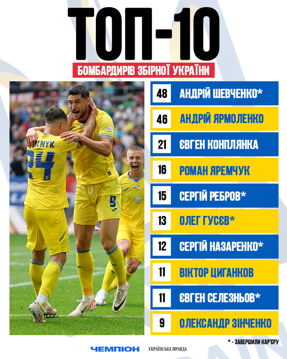 Яремчук випередив Реброва у списку найкращих бомбардирів збірної України