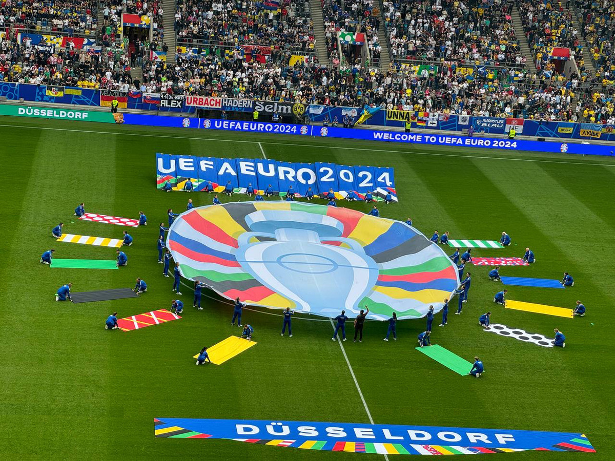 Пиво та різні смаколики можна було придбати на стадіоні, а після знайти своє місце та спостерігати за красою. Традиційний початок матчу — кубок Євро, прапори команд, які грають та їхній вихід.