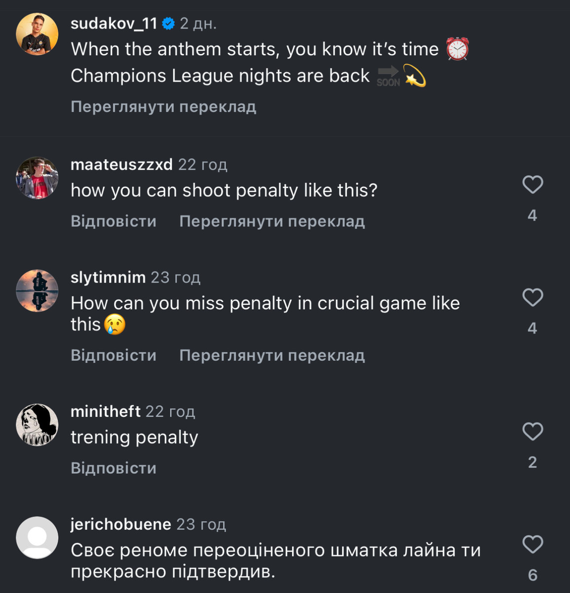 Велика ціна промаху: Судаков зазнав нищівної критики від фанатів після нереалізованого пенальті
