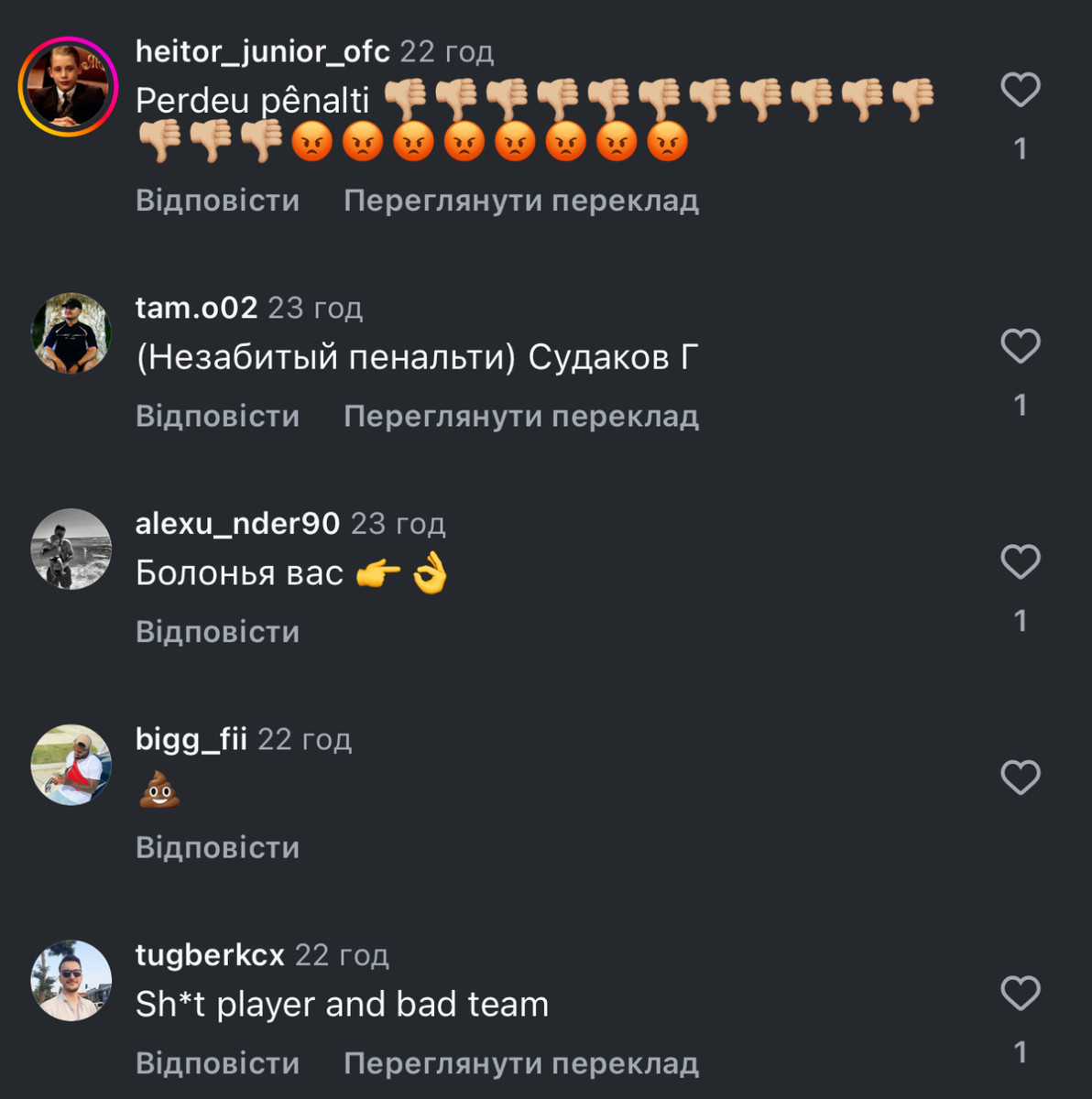 Півзахисник Шахтаря Георгій Судаков отримав чимало гнівних коментарів у соціальних мережах після свого промаху з 11-метрової точки в матчі Ліги чемпіонів проти Болоньї (0:0).