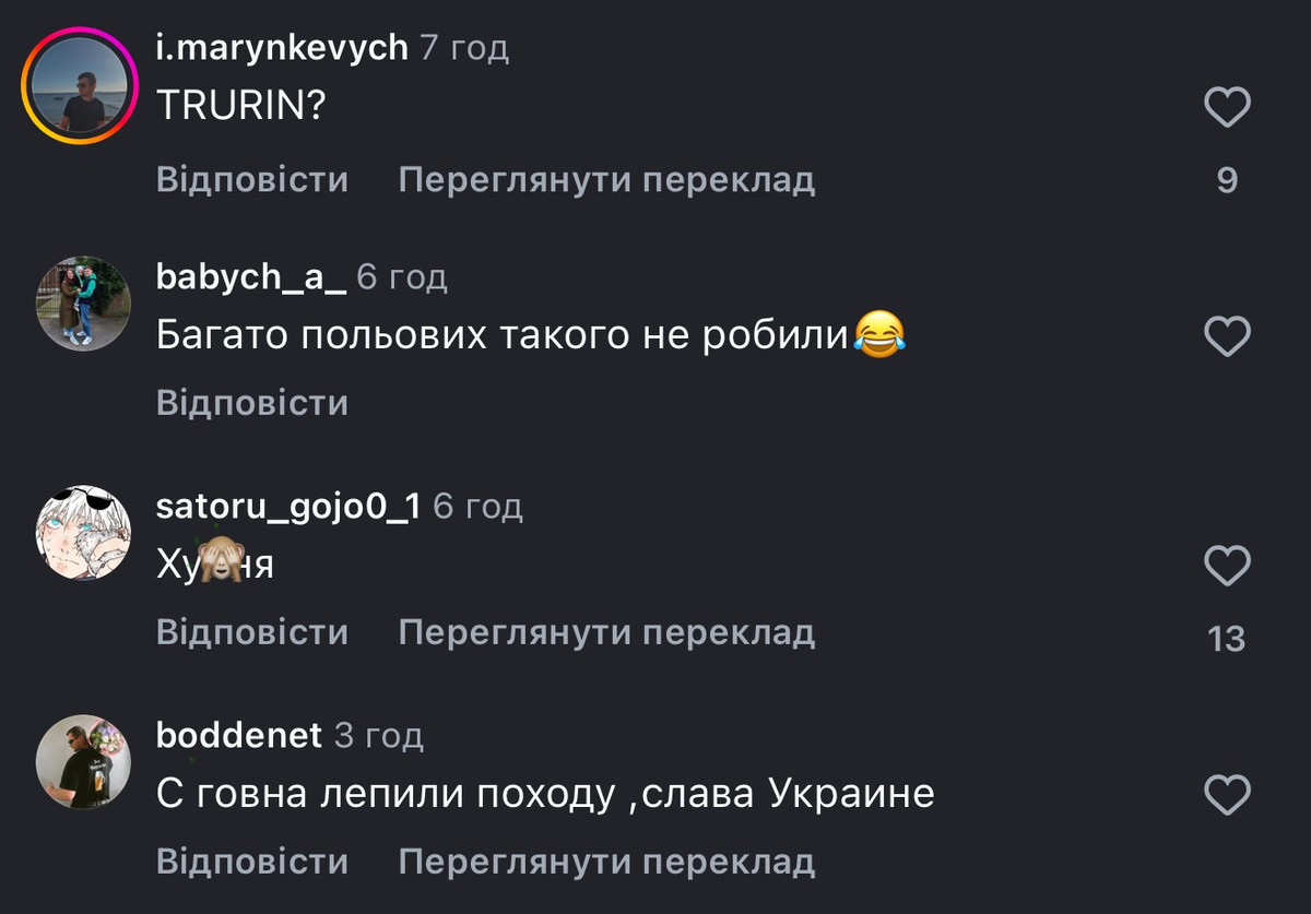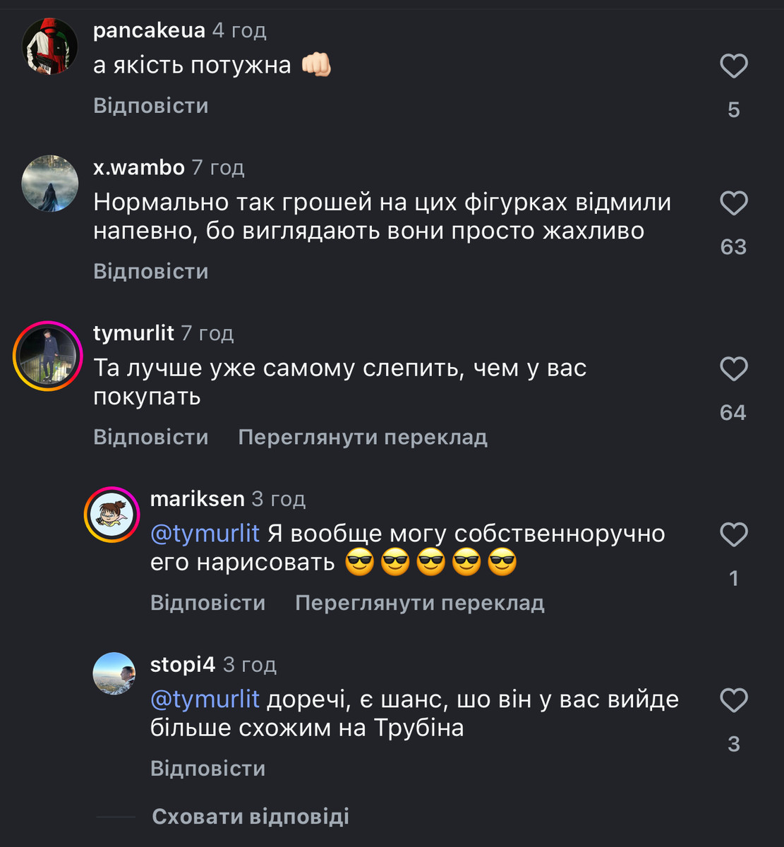 У коментарях під дописом фаншопу миттєво здійнявся шквал критики: вболівальники обурені якістю виробу, кепкують із зовнішньої схожості фігурки з Трубіним та називають ціну абсурдною.