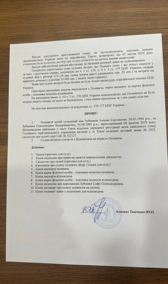 У документі, який дружина футболіста показала в сторіз, вона просить розірвати шлюб.