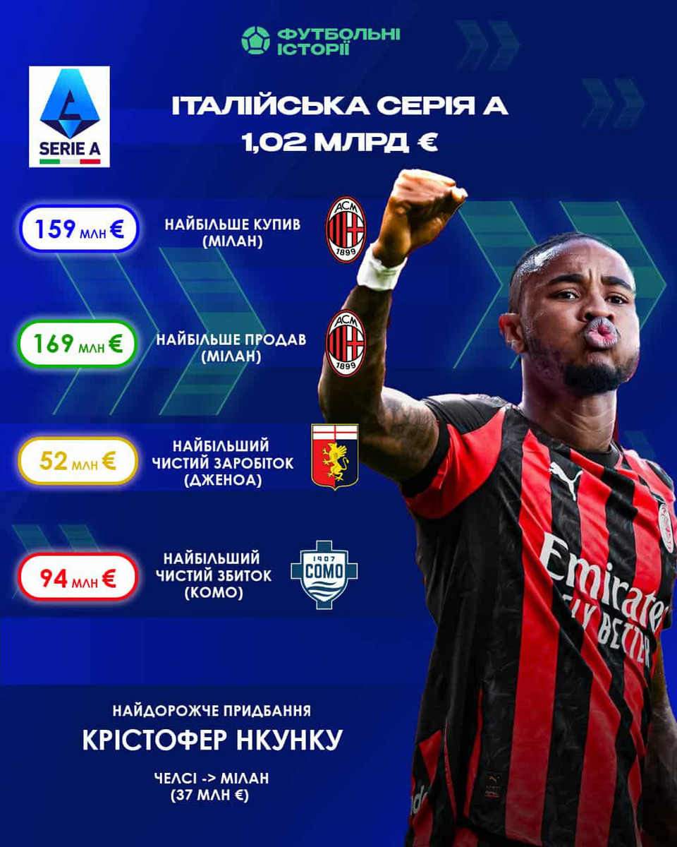 Серія А торгувала дуже цікаво. Вона друга в Європі за витратами на трансфери, але при цьому жодна покупка не обійшлася італійцям у понад 40 млн євро.