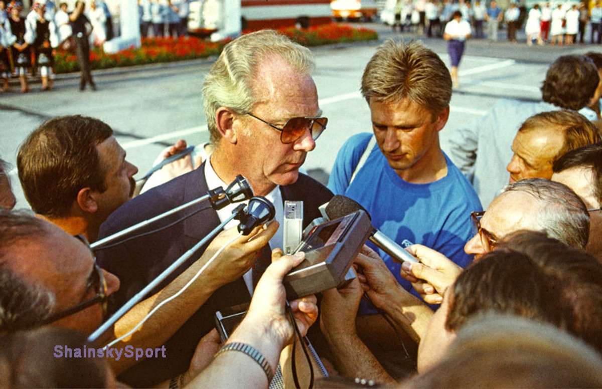 Мені пощастило не раз зустрічатися з Валерієм Васильовичем і на спортивній базі в німецькому Руйті. І ніколи він не відмовляв в інтерв'ю. Навіть тоді, коли я мав не найкращий вигляд. Якось зимового вечора у Руйті біля тренувального поля Лобановський почав відповідати на мої запитання, а в мене раптом "застряг" диктофон – на холоді "здохли" батарейки.