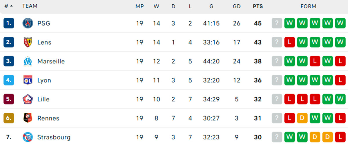 Понад те, за всю історію Ліги 1 лише тричі команда, що набирала 43 очки за пів року, не ставала чемпіоном Франції.