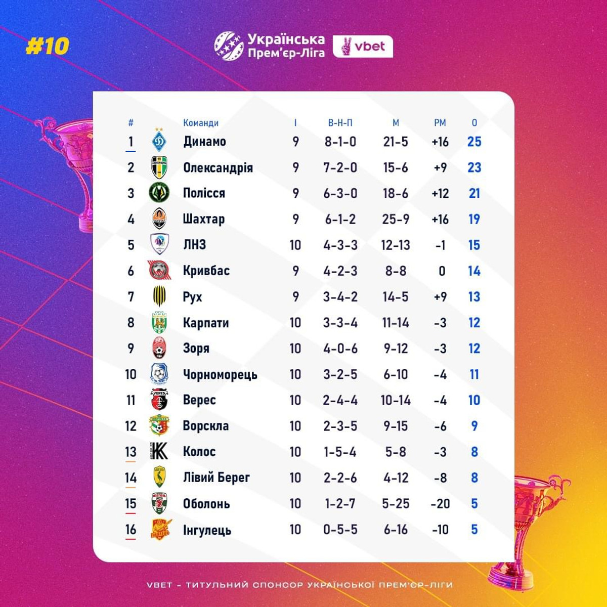 Турнірна таблиця після 9 турів