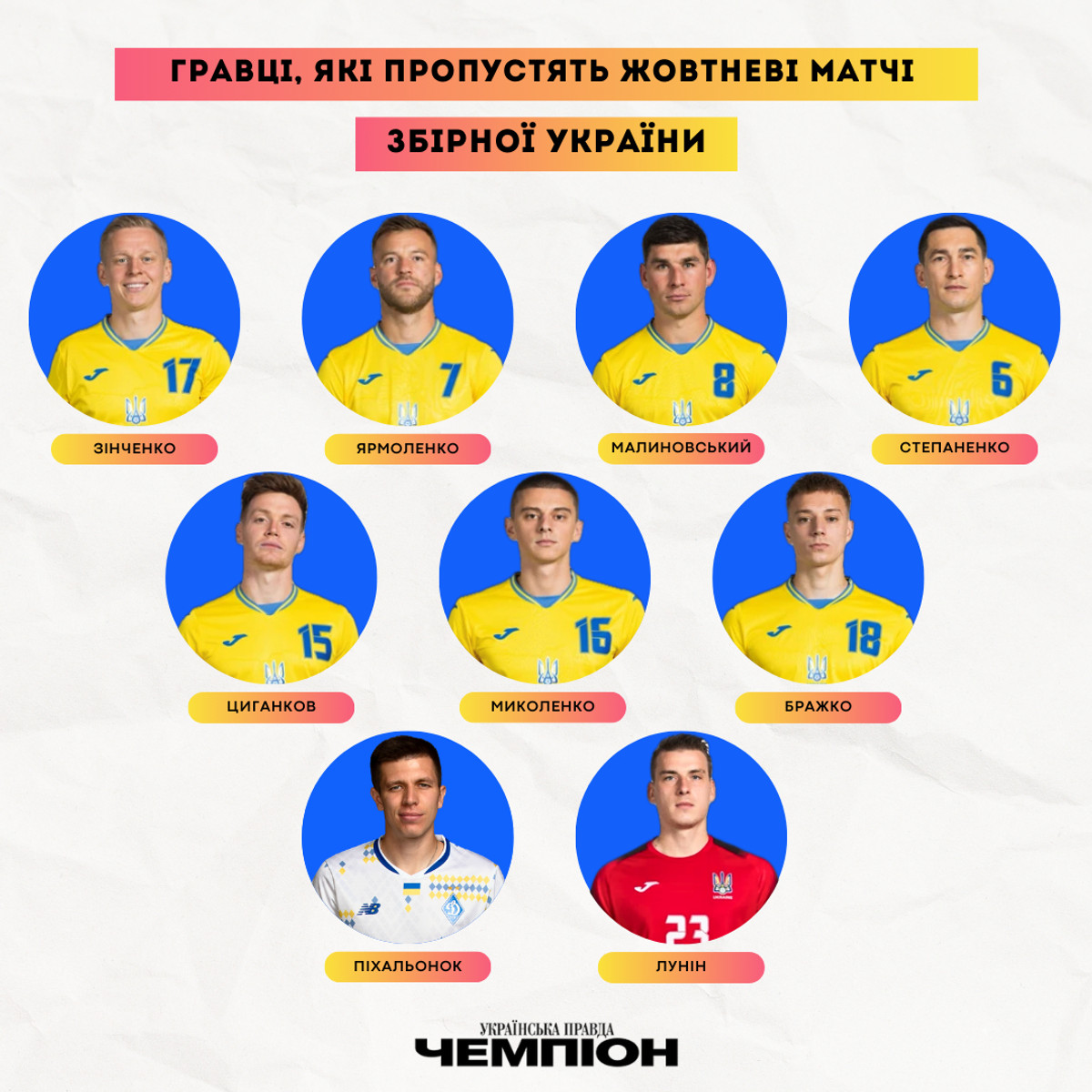 Замість усіх цих гравців, більшість з яких є основними футболістами на своїй позиції, Ребров довикликав лише 5 футболістів: