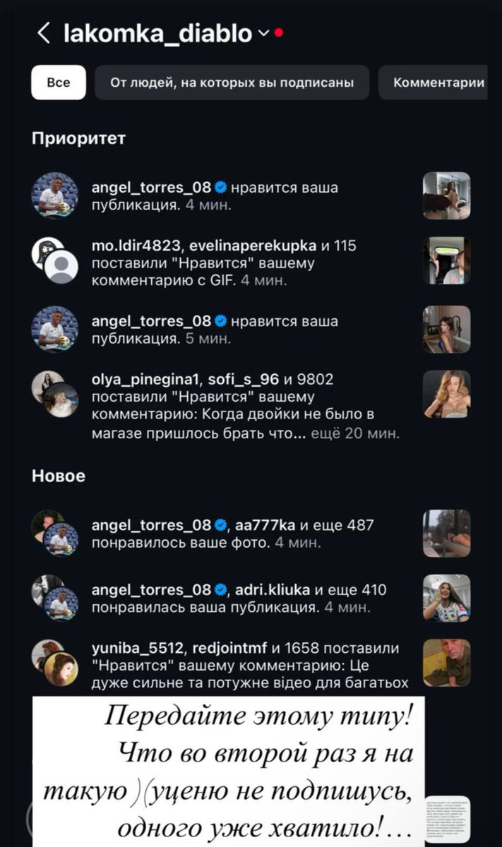 Крістіна Крижановська, яка раніше зустрічалася з форвардом киян Едуардо Герреро, опублікувала сторіс, де видно, як Торрес активно лайкає її пікантні фото.
