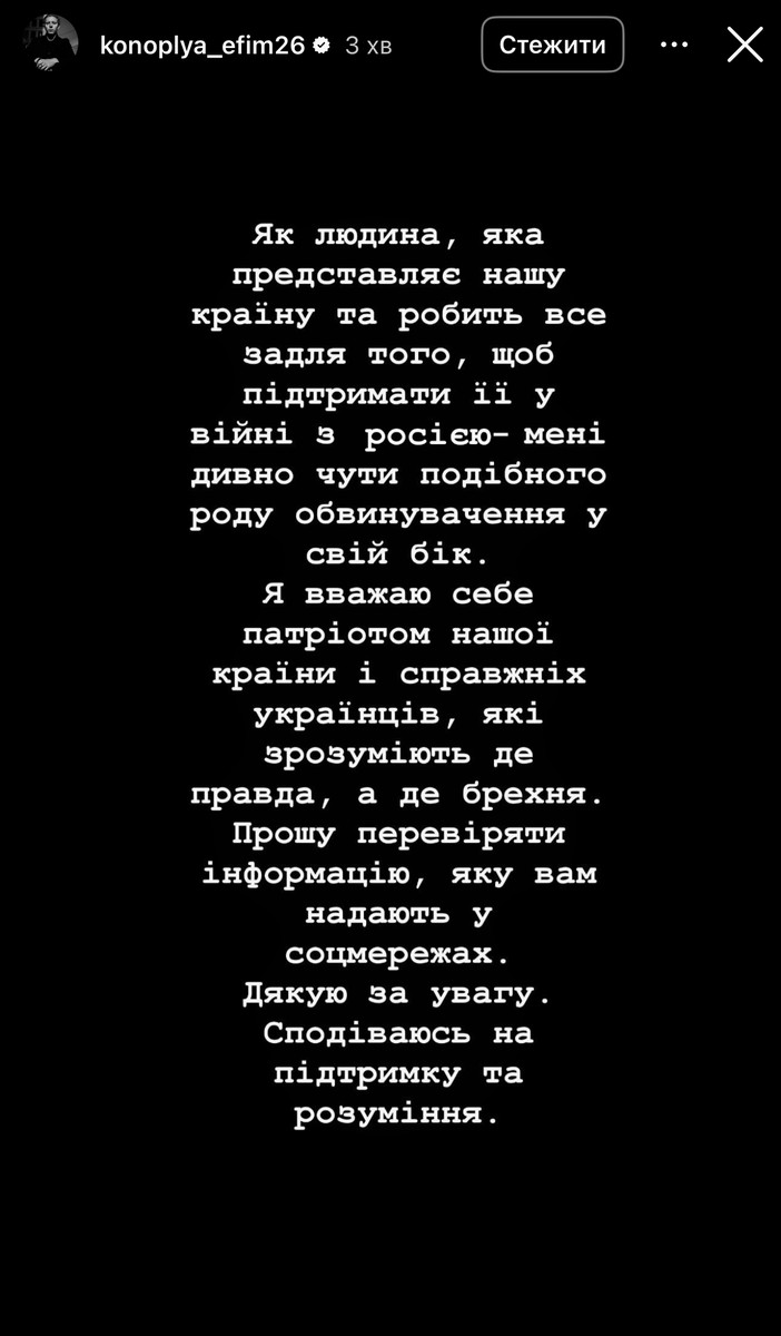 Згодом і сам Юхим Конопля виступив із заявою у соцмережах.