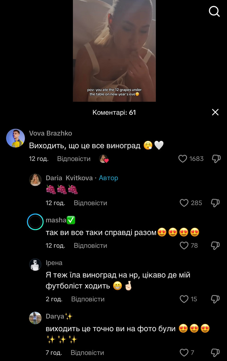 Цього разу привід для обговорення дала Даша, опублікувавши в TikTok кумедне відео з підписом. Родзинкою ролика стало фото, де її ніжно обіймає хлопець, обличчя якого залишилося за кадром. Але уважні фанати помітили: обійми дуже знайомі.