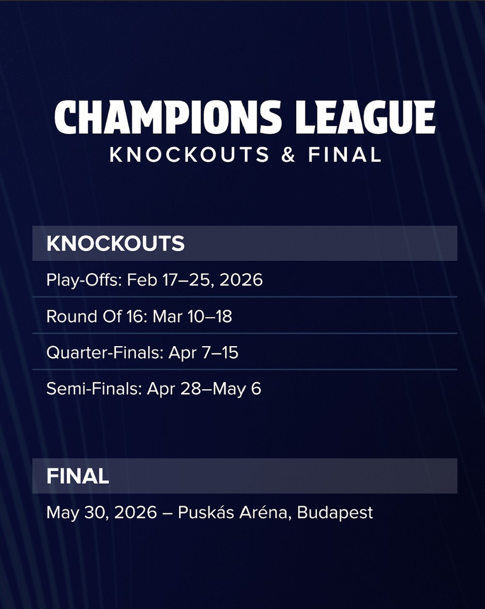Стадія матчів на вибування розпочнеться 17 лютого 2026 року зі стикових поєдинків, де-факто стадії 1/16 фіналу. 1/8 стартує на початку березня, а фінальна гра відбудеться 30 травня на "Пушкаш-Арені" в угорському Будапешті.