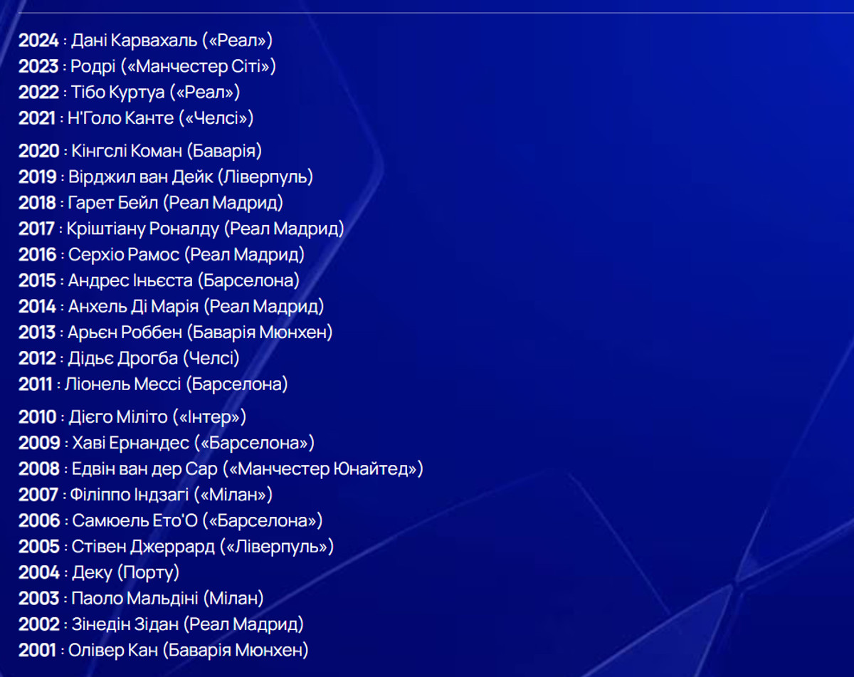 Визначився найкращий гравець фіналу Ліги чемпіонів