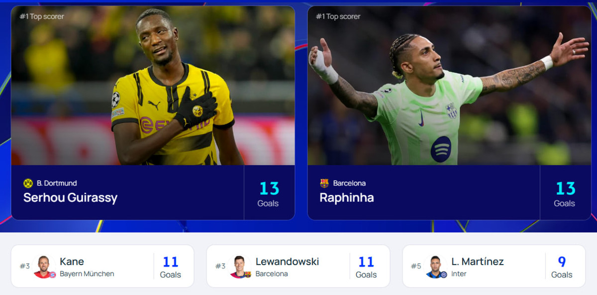 Нападник Боруссії Дортмунд Серу Гірассі та атакувальний хавбек Барселони Рафінья розділили звання найкращого бомбардира Ліги чемпіонів сезону-2024/25.