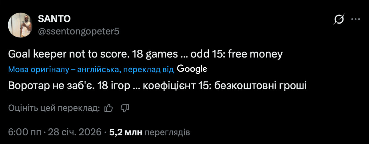 У соцмережі X (Twitter) справжнім вірусним хітом став прогноз користувача під ніком SANTO, який напередодні матчів Ліги чемпіонів упевнено радив усім ставити на те, що у 18 поєдинках турніру жоден воротар не заб'є гол.