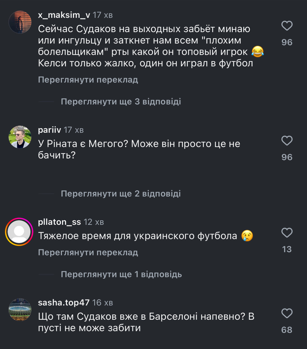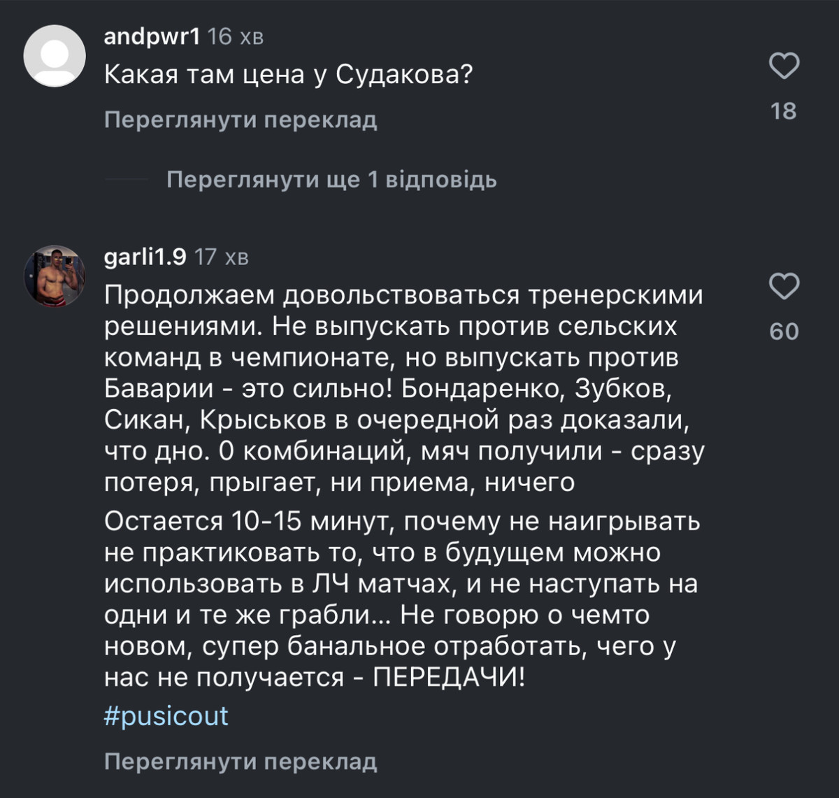 Більше за всіх "прилетіло" за гру Георгію Судакову. Вболівальники не можуть забути той самий промах футболіста у першому таймі, який міг би змінити хід матчу.