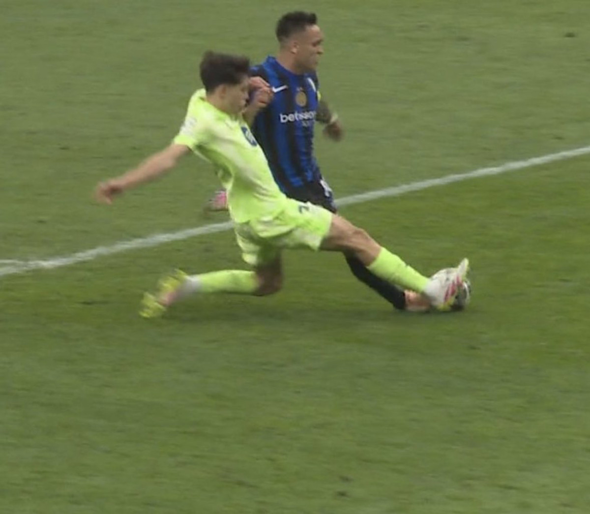 Перший суперечливий момент стався на 21-й хвилині, коли Інтер заробив 11-метровий удар. У цьому епізоду Мартінес грамотно підставився під м'яч, допомігши команді вийти вперед з пенальті.