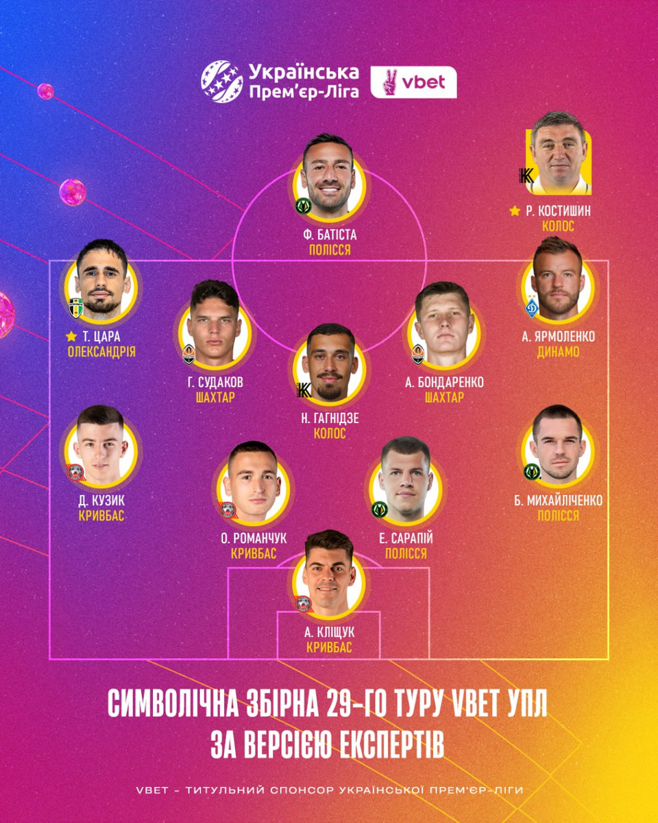 У складі лише один чемпіон: УПЛ оголосила символічну збірну 29 туру