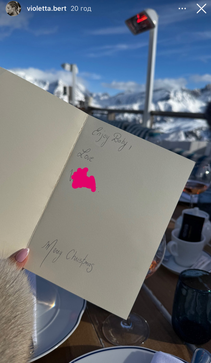 Віолетта поділилася в Instagram Stories фото романтичного жесту від футболіста. На картці, яку вона отримала під час вечері, було написано: "Насолоджуйся, малятко. З любов’ю, Вестон. З Різдвом."