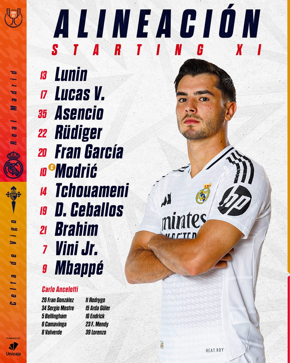 Український голкіпер мадридського Реала Андрій Лунін розпочне у стартовому складі матч 1/8 фіналу Кубку Іспанії проти Сельти.